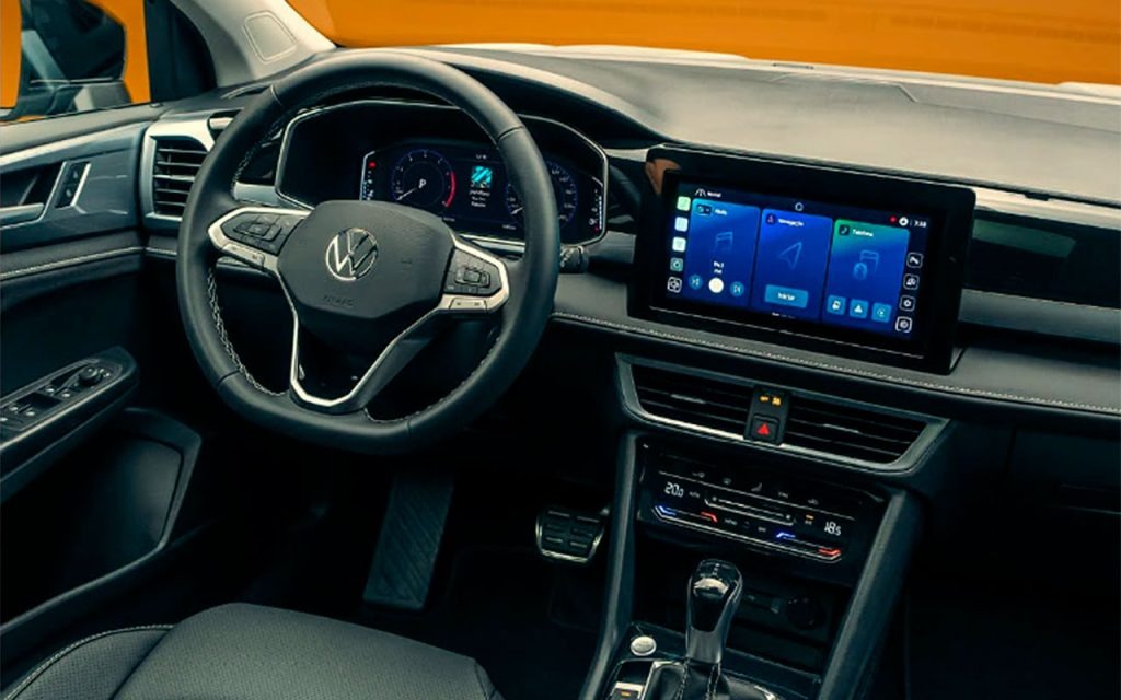 Por dentro, a picape pode se inspirar no crossover Tera, com acabamento mais moderno, uso de revestimentos texturizados nas portas e no painel e foco em conectividade, repetindo a estratégia da Volkswagen de aproximar picapes de SUVs em termos de conforto e tecnologia.